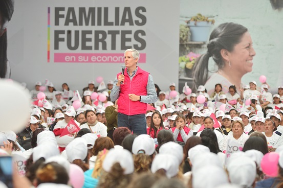Acompañado por el Secretario de Desarrollo Social, Eric Sevilla Montes de Oca, Del Mazo Maza destacó que Salario rosa es un programa que llega directamente a las amas de casa que trabajan y se esfuerzan para sacar adelante a la familia, sin intermediarios.