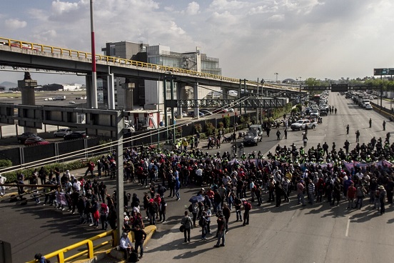 Con pancartas en las que piden el apoyo de la sociedad ante su manifestación, los efectivos han paralizado la circulación en los carriles centrales de esta importante vialidad, mientras que se han habilitado los laterales de bulevar Puerto Aeropuerto.