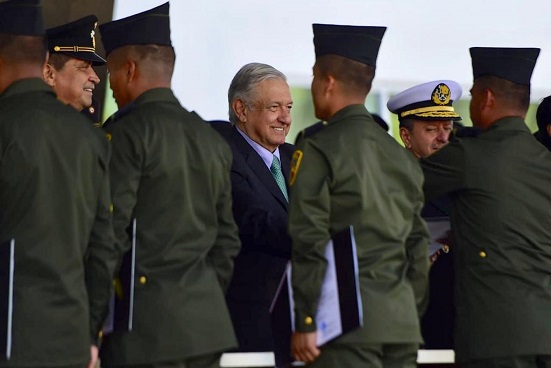 El residente Andrés Manuel López Obrador encabezó la ceremonia de graduación de 773 sargentos, de los cuales 30 son mujeres, egresados de la Escuela Militar de Sargentos en esta entidad.