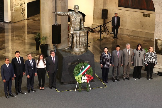 Junto con la presidenta de la Mesa Directiva, Mónica Fernández Balboa; el presidente de la Junta de Coordinación Política (Jucopo), Ricardo Monreal Ávila y la presidenta de la Comisión de Medalla Belisario Domínguez, Sasil De León Villard, el coordinador parlamentario encabezó la Ceremonia de Guardia de Honor y conmemoración por el Aniversario Luctuoso.