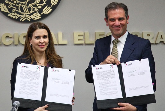 El convenio, celebrado en la sede del organismo electoral, fue firmado también por Marcela Guerra y Gerardo Triana, representantes del instituto político ante el organismo electoral.