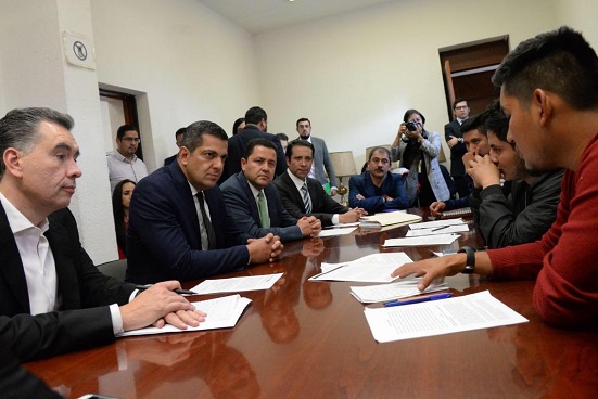 En ella participan un grupo de siete normalistas, así como Sonia Salazar, titular de la Unidad para la Atención de Organizaciones Sociales, y Waldo Fernández González, titular de la Unidad de Gobierno, ambos de la Segob.