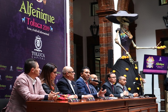 Más de 1 millón 500 mil personas se esperan en la Feria y Festival Internacional Alfeñique Toluca 2019, que llenará del color y sabor de la tradición de Día de Muertos al municipio hasta el 3 de noviembre, donde se estima una derrama económica de 110 a 120 millones de pesos, explicó el alcalde Juan Rodolfo Sánchez Gómez en conferencia de prensa.