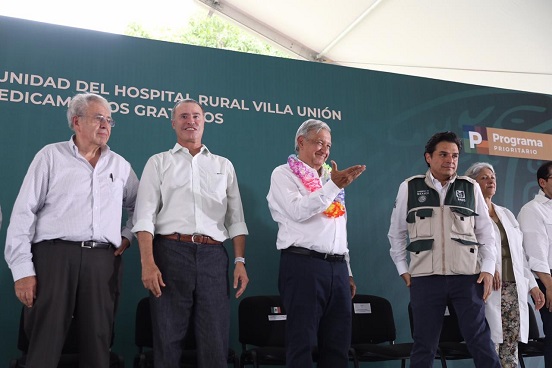 El mandatario sostuvo un encuentro con la Comunidad del Hospital Rural Villa Unión, con el cual se está alcanzando la visita a 75 de los 80 hospitales IMSS Bienestar del país para iniciar la nueva estrategia de la Cuarta Transformación.
