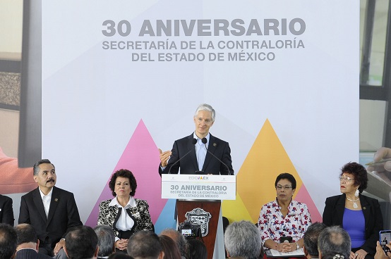 En el 30 aniversario de la Secretaría de la Contraloría, el Gobernador Alfredo Del Mazo Maza enfatizó que esta dependencia es un referente en el país, debido a que promueve prácticas gubernamentales transparentes en materia de fiscalización, además de utilizar la tecnología para detectar, inhibir y combatir actos de corrupción por parte de funcionarios públicos.