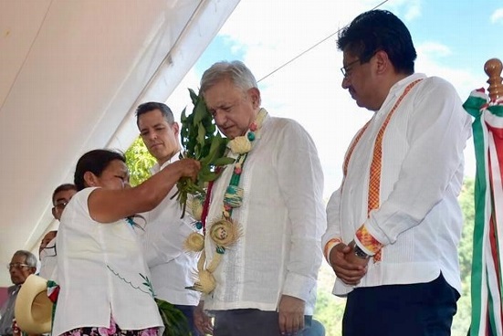San Juan Bautista Cuicatlán, Oaxaca.- En este municipio alejado de la costa oaxaqueña, el presidente Andrés Manuel López Obrador accedió a una «limpia», en el marco de una gira que abarcará varios estados del país para reunirse con grupos indígenas y afrodescendientes a quienes expondrá el alcance de sus programas sociales.