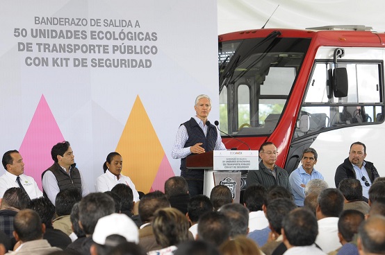 Al dar el banderazo de salida a 50 unidades de transporte público nuevas y con equipo de seguridad, el Gobernador Alfredo Del Mazo Maza enfatizó que la modernización de este sector es un esfuerzo en el que participan las empresas, los operadores y las autoridades, ya que todos comparten el objetivo de mejorar este servicio y ofrecer más seguridad a los usuarios.