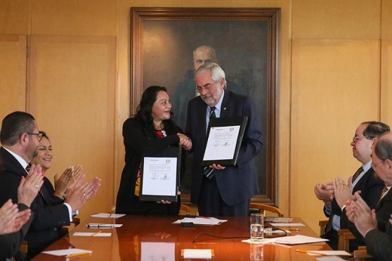 El acuerdo fue firmado en la Torre de Rectoría de Ciudad Universitaria por el rector de la UNAM, Enrique Graue Wiechers, y la secretaria de Bienestar, María Luisa Albores González, quien se refirió al bienestar de los mexicanos como un objetivo común de ambas instituciones.