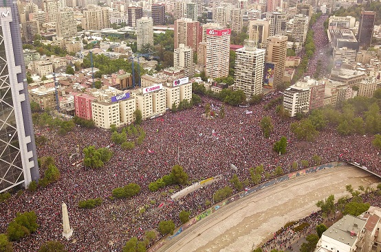Con cánticos que expresan su sentir ante la situación en Chile, los manifestantes se encuentran por todas las calles aledañas a la referida plaza, ubicada en el centro de la capital chilena.