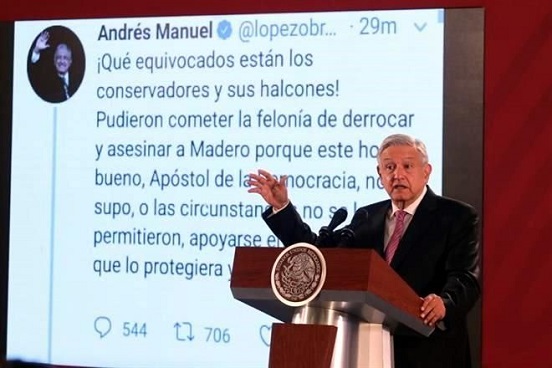 En este marco, sostuvo que el gobierno federal actual cuenta con la mayoría ciudadana que se expresa por la justicia y es amante de la legalidad y la paz, y no permitirá otro golpe de Estado como el que sucedió con Francisco I Madero.