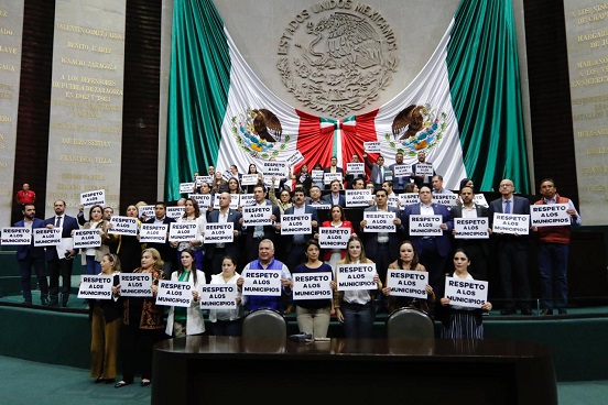 Una protesta en el Palacio Legislativo de San Lázaro de presidentes municipales de todos los estados del país y de todos los partidos políticos en el Palacio Legislativo de San Lázaro impidió la tarde de este jueves la continuación de los trabajos en la Cámara de Diputados.