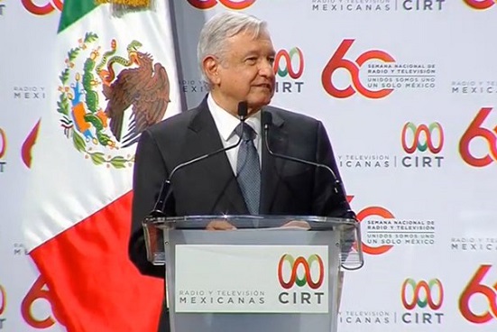 El presidente Andrés Manuel López Obrador encabeza la entrega de premios de la 60 Semana Nacional de Radio y Televisión, en compañía de empresarios del sector y otras figuras públicas.