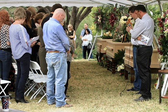 Los servicios funerarios iniciaron a las 10:20 horas en memoria de Dawna Ray Langford y sus hijos Trevor Harvey Langford y Rogan Jay Langford.