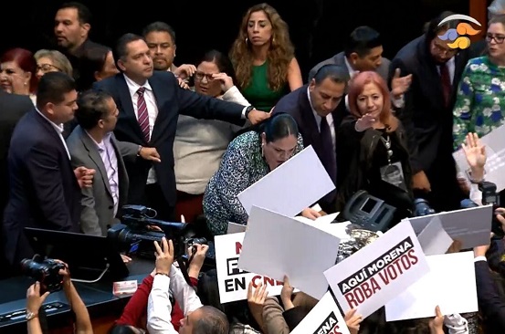 El coordinador parlamentario del PAN, Mauricio Kuri González, reiteró: “lo que sucedió el jueves pasado no fue algo menor, fue un robo”, porque quitaron dos votos y con ello generaron la posibilidad de alcanzar las dos terceras partes de la votación requerida para el nombramiento.