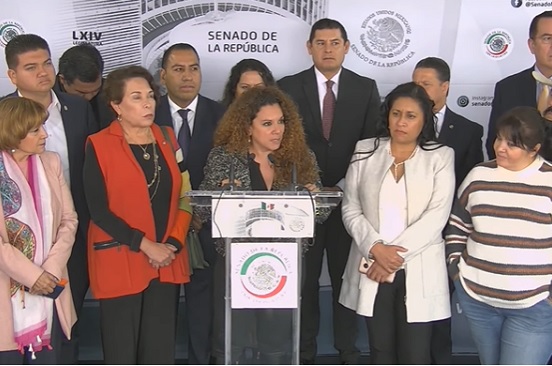 La senadora Rocío Adriana Abreu Artillano, al frente de un grupo de morenistas, en conferencia de prensa, dijo que su bancada está a favor de que se reponga la elección y que no quede duda del resultado.