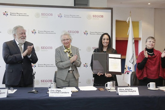 Mónica Maccise Duayhe tomó posesión este miércoles como titular del Consejo Nacional para Prevenir la Discriminación (Conapred) tras la renuncia de Alexandra Haas a la presidencia de ese organismo con un periodo de cuatro años, 2019-2023.