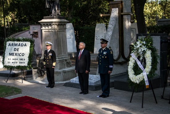 Tras colocar una ofrenda floral y montar guardia de honor en la tumba de Pedro Sainz de Baranda y Borreiro, quien encabezó la defensa de San Juan de Ulúa, en Veracruz, López Obrador reconoció al almirante José Rafael Ojeda Durán, quien dijo es un hombre leal y sostuvo que no obstante que no lo conocía, no se equivocó al nombrarlo secretario de Marina.