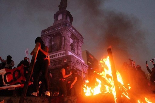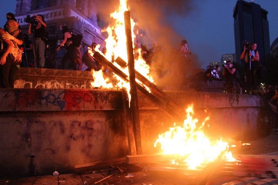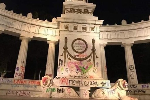 En su recorrido siguieron con los destrozos dañando seriamente el Hemiciclo a Juárez.