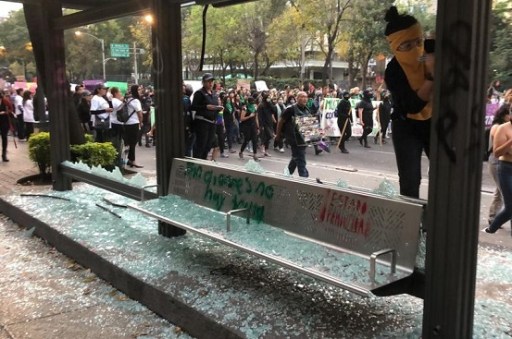 A la movilización se siguen sumando mujeres y se calcula que hasta el momento el grupo está integrado por mil 500 personas; a su paso algunas de ellas destrozan vitrinas sobre Peseo de la Reforma y parabuses, como es el caso de la estación Hamburgo del Metrobús.