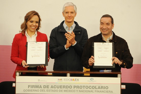 En este evento el Gobernador mexiquense atestiguó la firma de convenio entre el Instituto Mexiquense del Emprendedor (IME) y Nacional Financiera (Nafin), mediante el cual se brindarán más oportunidades de financiamiento a más emprendedoras mexiquenses que buscan que sus empresas crezcan.