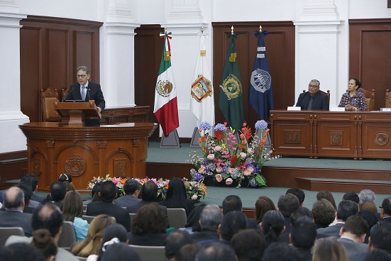 Al encabezar el primer informe de actividades de la secretaria general de la Federación de Asociaciones Autónomas de Personal Académico de la UAEM (FAAPAUAEM), Gilda González Villaseñor, el rector pidió a los universitarios ver esta situación como una gran oportunidad para, en pleno ejercicio de la autonomía institucional, desarrollar “lo que nos sobra: imaginación, inteligencia y resiliencia para autogenerar recursos y buscar apoyos a través de convenios de investigación y capacitación”.