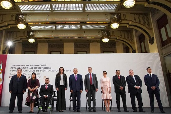 El presidente Andrés Manuel López Obrador y la titular de la Comisión Nacional de Cultura Física y Deporte (Conade), Ana Gabriela Guevara Espinoza, entregaron los premios nacionales del Deporte y al Mérito Deportivo 2019.