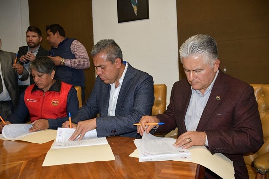 En un marco de diálogo y concreción de acuerdos en beneficio de los 4662 servidores públicos agremiados al SUTEYM, el Secretario General de la organización, Herminio Cahue Calderón, el Presidente Municipal Constitucional de Ecatepec, Fernando Vilchis Contreras, y la Secretaria seccional local, María del Carmen Flores Ramírez, firmaron el convenio de sueldo y prestaciones del año en curso.
