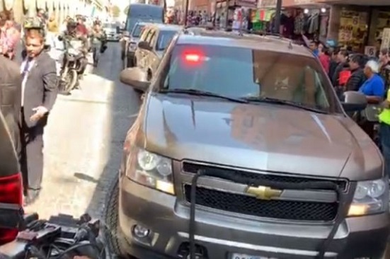 El convoy del funcionario estadunidense llegó por avenida 20 de Noviembre procedente de Insurgentes, donde hizo escala en la sede de la Fiscalía General de la República (FGR).
