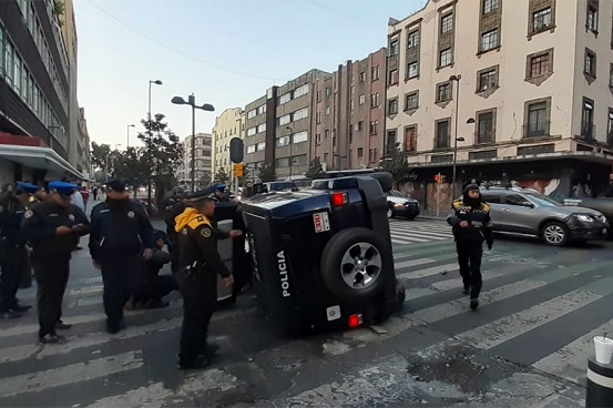Servicios de emergencia atiendieron la volcadura de un vehículo de la Secretaría de Seguridad Ciudadana de la Ciudad de México sobre las calles de 20 de Noviembre y República de El Salvador, en la colonia Centro, que causó lesiones a una persona.