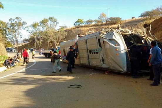 Autoridades estatales confirmaron la muerte de dos personas luego del accidente de un autobús en la carretera federal 135 D Oaxaca-Cuacnopalan.