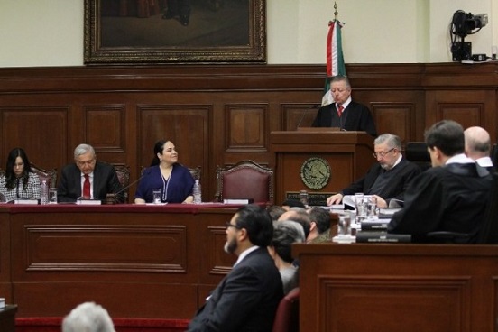 Al rendir su primer informe de labores ante los plenos de la SCJN, el Consejo de la Judicatura Federal (CJF) y del Tribunal Electoral del Poder Judicial de la Federación (TEPJF) reconoció la asistencia del titular del Ejecutivo federal, Andrés Manuel López Obrador.