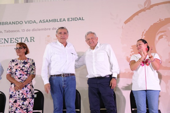El mandatario federal realiza una visita en Tabasco y Chiapas para supervisar el avance del programa Sembrando Vida, que se aplica -dijo- en 150 mil hectáreas en la zona; destacó que en programas sociales el gobierno ha invertido 300 mil millones de pesos.