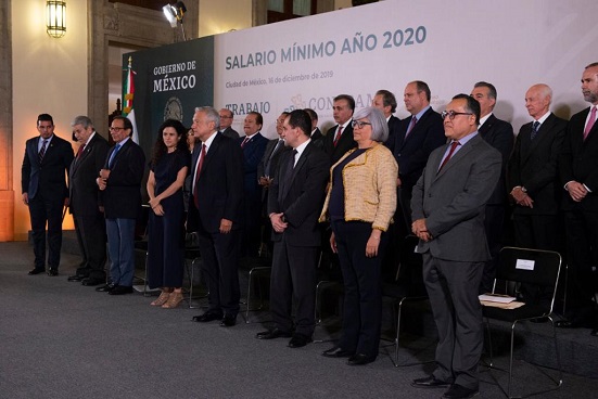 En la frontera norte habrá un incremento de cinco por ciento, pasará de 156 a 185 pesos; «nos permitimos anunciar que por consenso llegamos a un acuerdo para que en 2020 el salario a nivel nacional y al cinco por ciento en la zona libre de la frontera norte”, anunció la titular de la Secretaría del Trabajo, Luisa María Alcalde.
