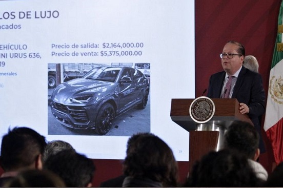 En conferencia de prensa precisó que se vendieron 91 joyas y se obtuvieron seis millones 86 mil 200 pesos; dos aeronaves por un millón 294 mil 900 pesos; seis vehículos por un millón 245 mil pesos; siete vehículos de lujo por 28 millones 685 mil pesos y un inmueble con valor de 14 millones 330 mil 165 pesos.