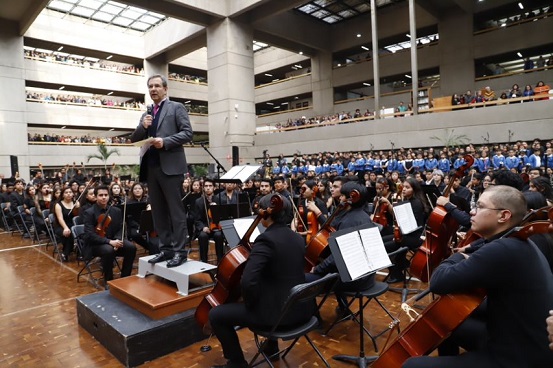 Ante funcionarios y 509 alumnos de todos los niveles educativos, reconoció que en la SEP todos forman un gran equipo, y sin distinción de sus actividades colaboran a que niñas y niños aprendan música, y a que en cada salón de clases se otorgue la educación que se quiere en la nueva escuela mexicana.