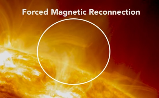 Anteriormente se ha visto un tipo de reconexión magnética conocida como reconexión espontánea, tanto en el Sol como alrededor de la Tierra.