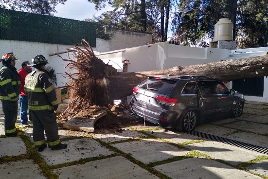 Ráfagas de viento cercanas a los 60 kilómetros por hora que se registraron en Toluca provocaron la caída de 45 árboles, dos postes de la CFE, un espectacular y el colapso de una barda en varios puntos de la capital sin reporte de lesionados, los cuales fueron atendidos por la Coordinación Municipal de Protección Civil y Bomberos con apoyo de la Dirección General de Seguridad Pública.