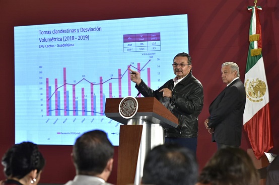 El funcionario mostró una gráfica en la que se observa cómo a partir de 2012 se mantuvo un alza constante en el robo de combustibles, “escalando año con año el robo con cuatro mil millones 600 mil barriles, hasta alcanzar 20 mil millones en 2018”.