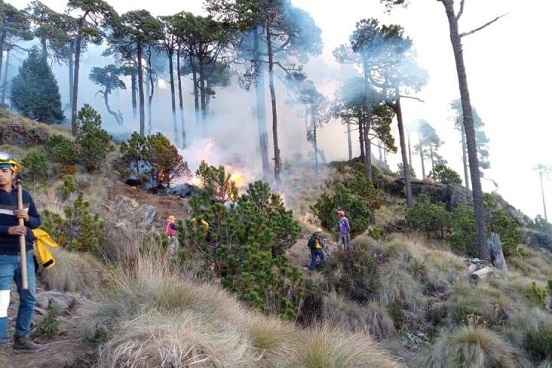 En la erradicación del siniestro registrado en esta zona de la localidad de Tembladeras, municipio de Xico, laboran 25 elementos de la Comisión Nacional Forestal (Conafor), Protección Civil estatal y Cruz Roja Perote.
