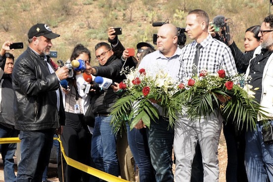 Adrián, visiblemente conmovido, dejó una ofrenda floral en el lugar donde su hija fue asesinada; llamó a la unidad y con ello se alcance la paz en México: «no somos enemigos, si el dolor nos encontró que la esperanza nos encuentre».