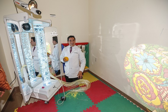 Explicaron que el área de integración multisensorial cuenta con una fibra de vidrio que permite trabajar con la visión de niños con autismo y dificultades de aprendizaje, lo que facilita la atención en un solo estímulo y mejora las habilidades de tolerancia y concentración.