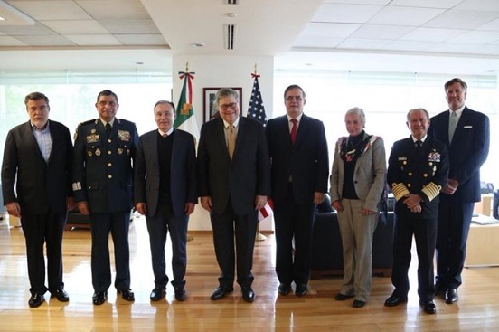 El canciller de México, Marcelo Ebrard, y el fiscal general de Estados Unidos, William Barr, acordaron un programa común binacional para reducir el tráfico de armas, drogas y recursos financieros de las redes de delincuencia transnacional en tierra, mar, puertos y aeropuertos.