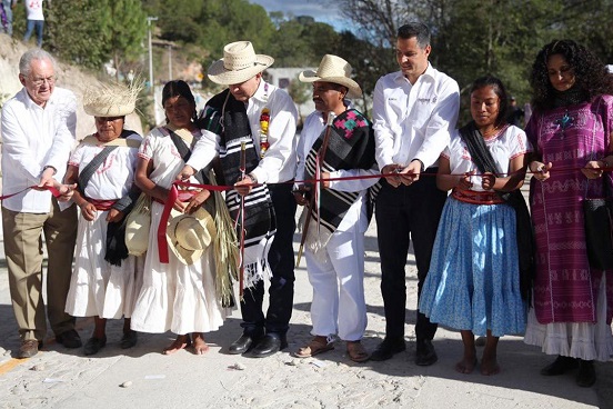 San Antonio Sinicahua, Oaxaca.- El presidente Andrés Manuel López Obrador inauguró el camino de concreto hidráulico que conecta la cabecera municipal de San Antonio Sinicahua con Río de Tablas, en Tlaxiaco, el cual durante su construcción generó 279 empleos entre directos e indirectos.