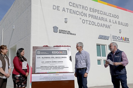 El Gobernador Alfredo Del Mazo Maza entregó la rehabilitación del Centro Especializado de Atención Primaria a la Salud de Otzoloapan (CEAPS), donde informó que se han mejorado las instalaciones de infraestructura y servicios de 320 Centros de Salud.