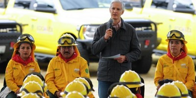 Entrega Alfredo del Mazo vehículos y equipamiento para combatientes forestales