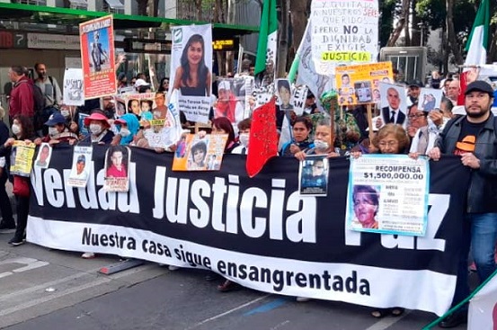 La secretaria de Gobernación, Olga Sánchez Cordero, acompañada del gabinete de seguridad recibió en Palacio Nacional a una comisión de la Caminata por la Verdad, la Justicia y la Paz.