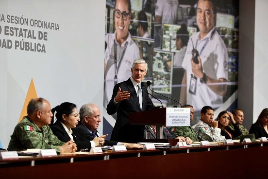 Ante Leonel Cota Montaño, Secretario Ejecutivo del Sistema Nacional de Seguridad Pública, Del Mazo Maza también exhortó a los 125 presidentes municipales de la entidad, a participar y asistir personalmente a estas reuniones, ya que en ellas se definen estrategias y acciones para hacer frente a la delincuencia.