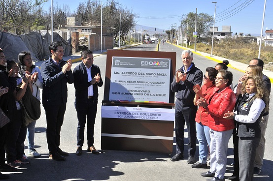 En beneficio de 300 mil habitantes del Valle de Toluca, el Gobernador Alfredo Del Mazo Maza entregó la ampliación del Boulevard Sor Juana Inés de la Cruz, una vialidad de más de 15 kilómetros de longitud que agilizará el tránsito de cerca de 20 mil vehículos que diariamente circulan por Toluca, Metepec y San Mateo Atenco.
