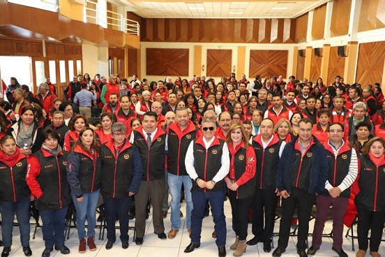 Con la representación de Herminio Cahue Calderón, Secretario General del Sindicato Único de Trabajadores de los Poderes, Municipios e Instituciones Descentralizadas del Estado de México (SUTEYM), el Presidente de la Comisión de Vigilancia e Investigación, René Palomares Parra, entregó más de 500 chalecos institucionales a agremiados de la sección ISSEMYM.