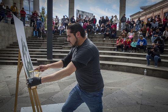 José Roberto Anaya López, egresado de la Facultad de Artes de la Universidad Autónoma del Estado de México, participó en la séptima edición del Paint Jam de esta casa de estudios, actividad mediante la que se fusionaron las artes plásticas con la música.